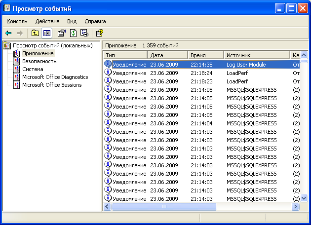 Чтобы протестировать этот модуль, запросите любую другую страницу в Web-приложении. Затем проверьте запись в журнале событий приложений Windows. (Чтобы посмотреть журнал, выберите в меню Start (Пуск) команду Programs => Administrative Tools => Event Viewer (Программы => Администрирование => Средство просмотра событий). На рис. 5.15 показаны зарегистрированные сообщения.
