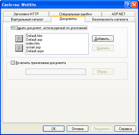 Вы можете сконфигурировать список документов, используемых по умолчанию, удаляя записи или добавляя новые. Большинство приложений ASP.NET просто используют Default.aspx как свою домашнюю страницу.